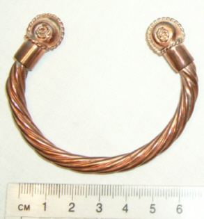 Based on Celtic neck and arm torcs of British Late Iron Age. There have been numerous finds of the first century BCE, with a variety of terminal shapes, usually made from gold or gold alloy.