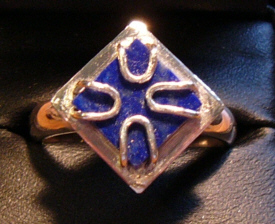 I call this a "Glove Ring" as I was inspired by the large rings worn by Medieval Ambassadors over their gloves. Apparently this served as a 'badge of recognition' even from a distance, and functioned to give what we would call "diplomatic immunity" - especially useful in battle zones! Medieval Bishops also commonly wore their 'ring of office' over their gloves. This ring can therefore fit a smaller finger or thumb over a leather glove, or a larger finger or thumb without a glove. Size = V 1/2.