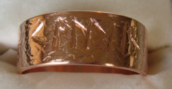 This ring is made from pure copper. Copper is the first metal known to be worked by humans by melting and casting, and its use for tools, weapons, and ornament during the Copper Age (c. 1850-1650 BCE) marked the transition from the Stone Age to the Bronze Age.