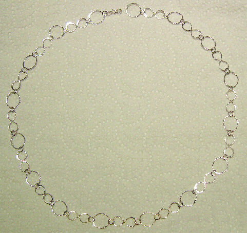 The necklace can be worn in three ways: the forged (sparkly) side out, the shiny side out, or "as it falls".