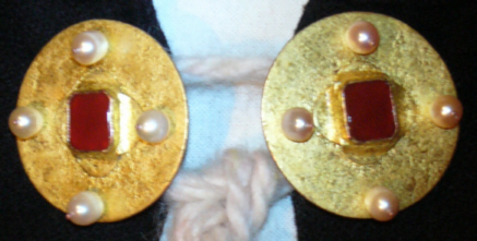 23K Gold, Carnelian, & Pearl Medieval Cloak Brooches -